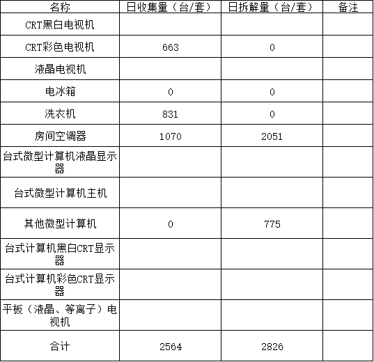 2025年08月31日废弃电器电子产品收集处置日报表