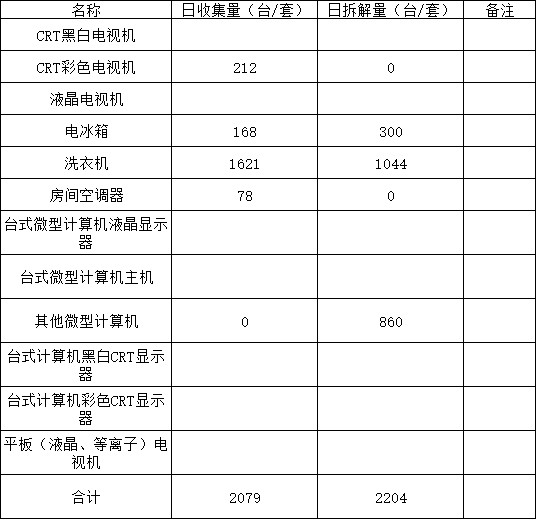 2026年01月21日废弃电器电子产品收集处置日报表